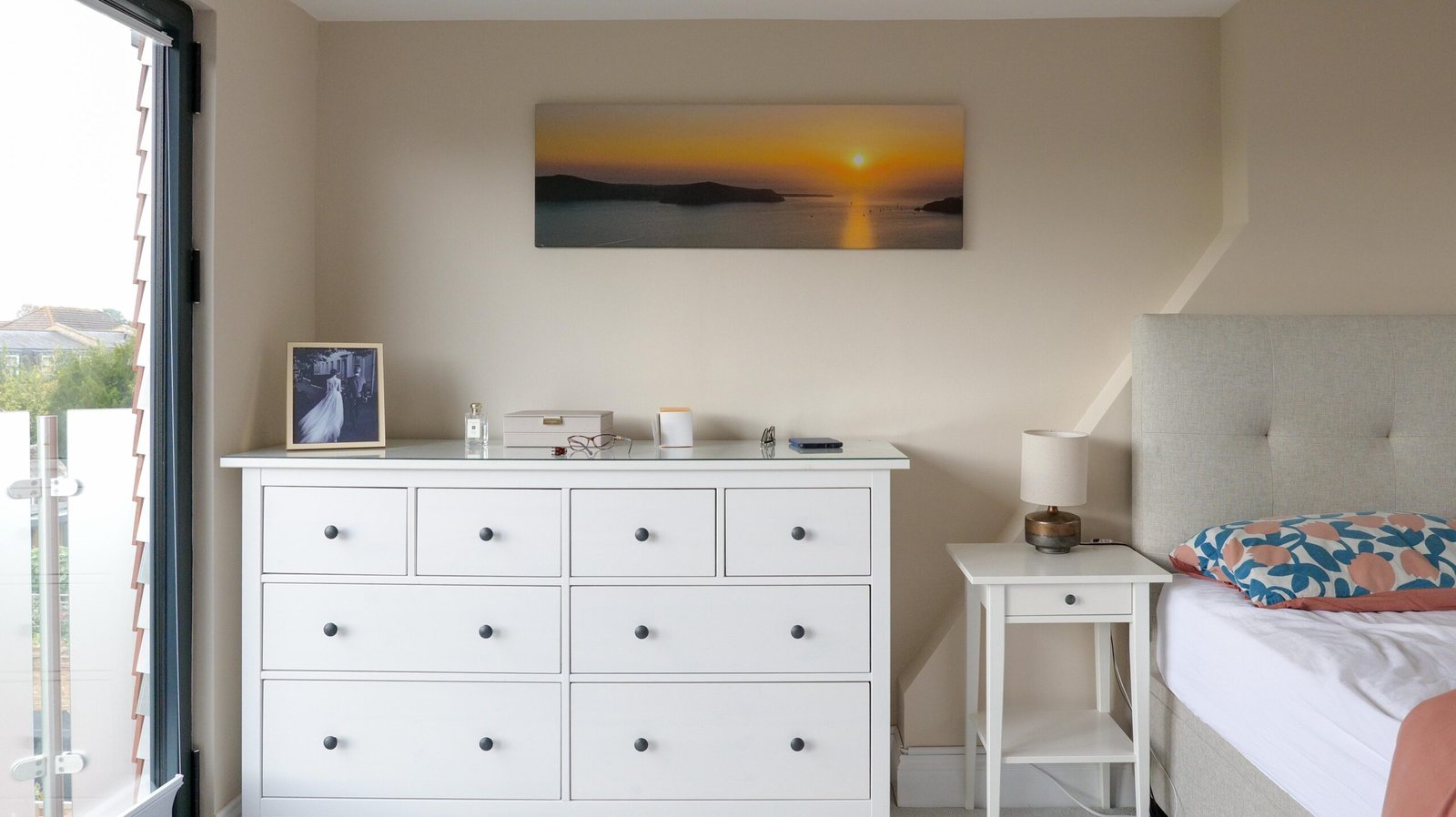 Following her design choices, we designed and installed a modern and spacious wardrobe from floor to ceiling. We decided to use an eggshell finish for the wardrobe as it provides the utmost protection to interior wood despite being the toughest interior finish. After the approval of our client, we used Farrow & Ball Wimborne White paint which is among the toughest and most durable paints there are.